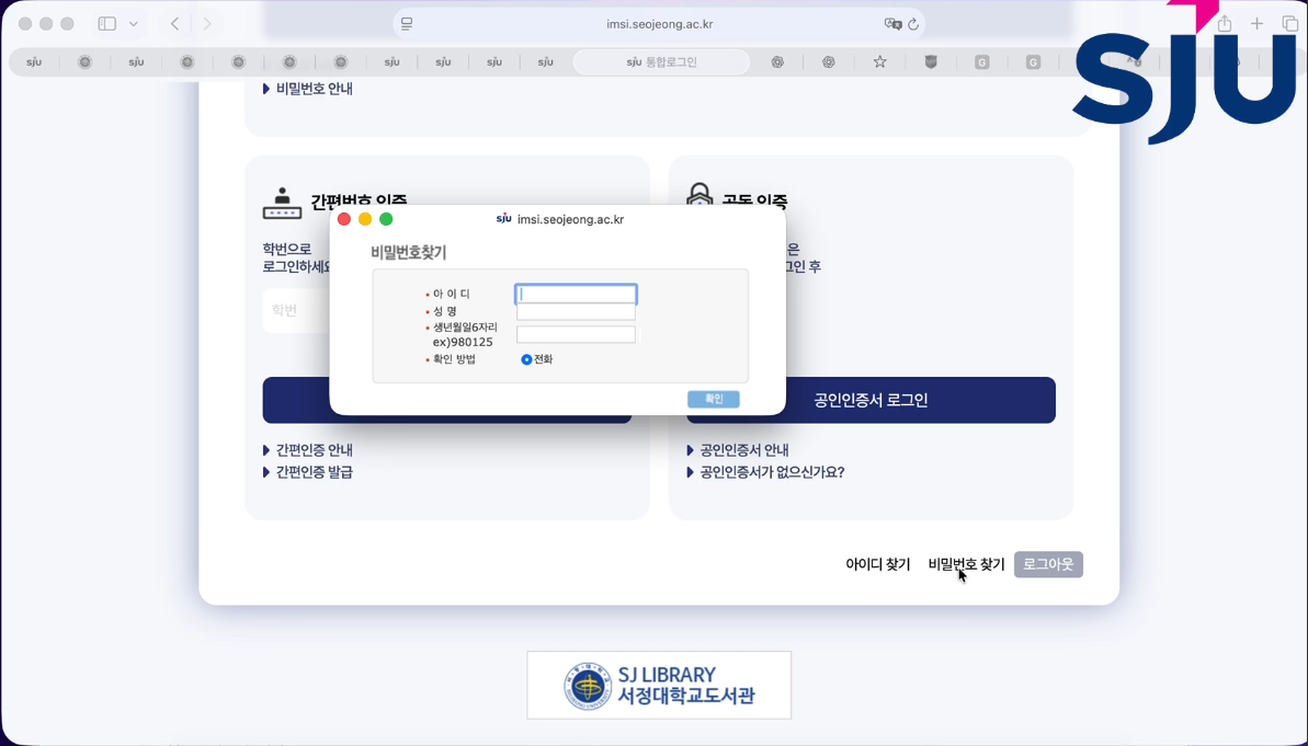 CÁCH TÌM LẠI ID VÀ MẬT KHẨU TRÊN TRANG CHỦ ĐẠI HỌC SEOJEONG N