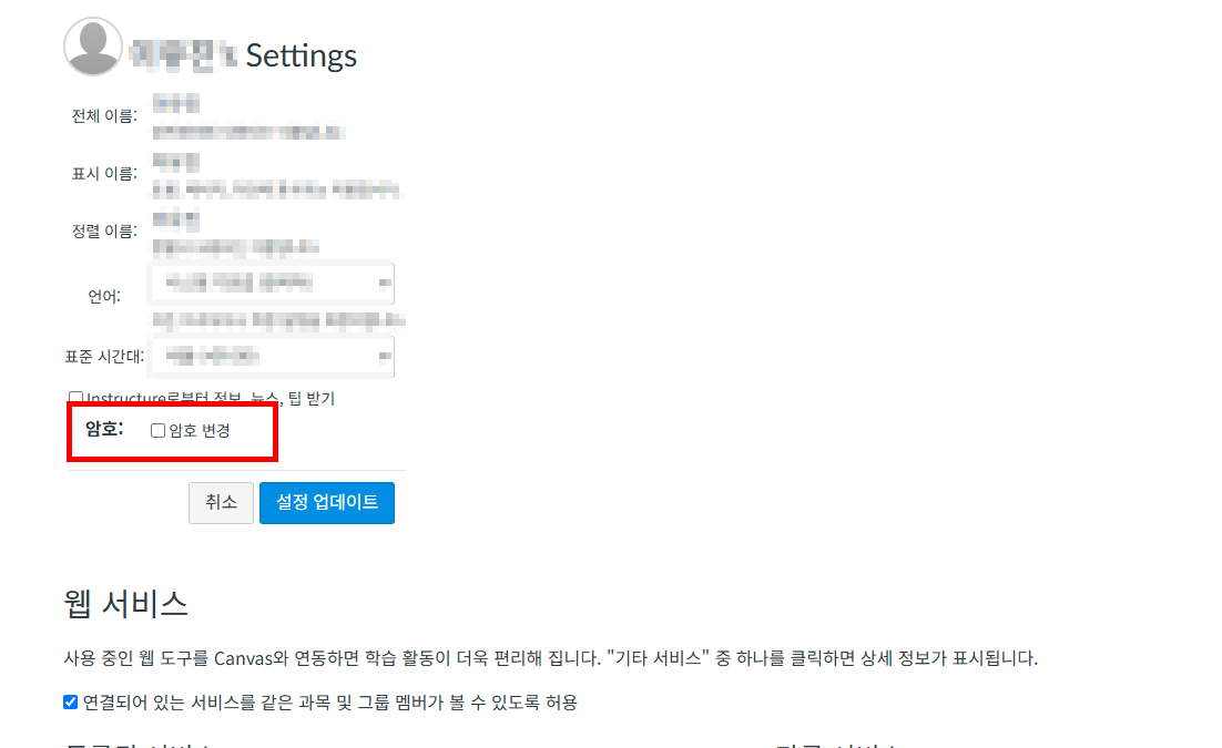 3) Chọn thay đổi mật khẩu (암호 변경)